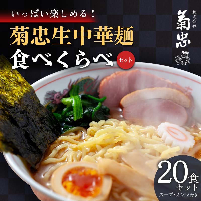 【ふるさと納税】いっぱい楽しめる!菊忠生中華麺食べくらべセット20食セット(スープ・メンマ付き) F23R-598