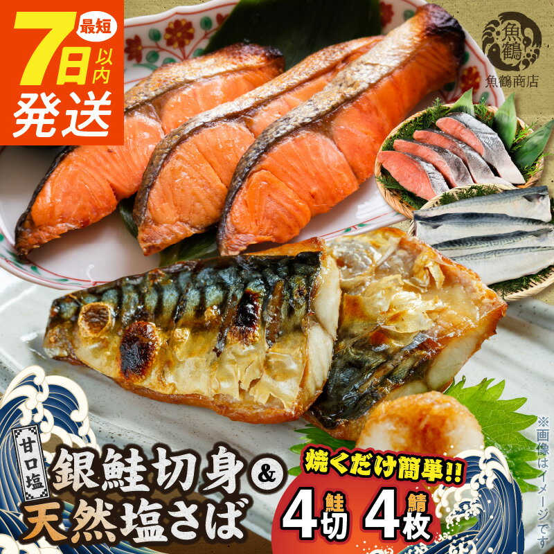 【ふるさと納税】【限定】 《7日以内発送》 和歌山魚鶴仕込の甘口塩銀鮭切身 4切 & 天然 塩さばフィレ4枚 (2切×2パック&2枚2パック 小分け)【さけ しゃけ シ..