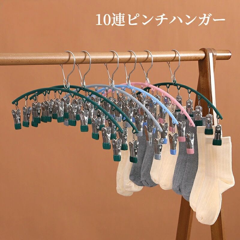 ピンチハンガー 10ピンチ クリップハンガー ソックスハンガー 靴下 洗濯バサミ ステンレスハンガー 物干しハンガー ピンチが絡まない 錆に強い 多機能ハンガー..
