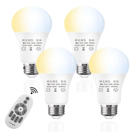 - LED電球4個セットタイマー機能付きリモコン9W調光調色(昼光色昼