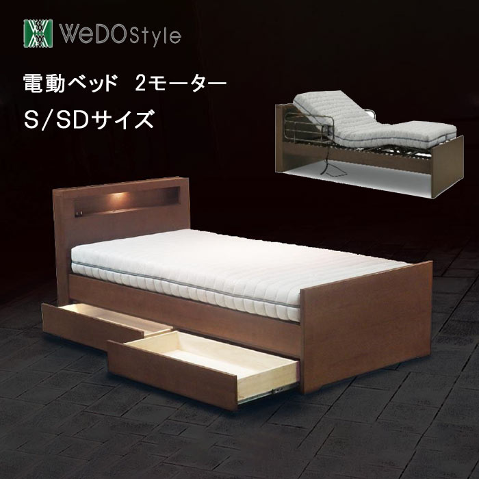 電動ベッド リクライニング 2モーター電動ベッド ポジション ライト付き 収納 宮付き サイドガード 2 個付 介護 支援 シングルベッド セミダブル ベッド 介護..
