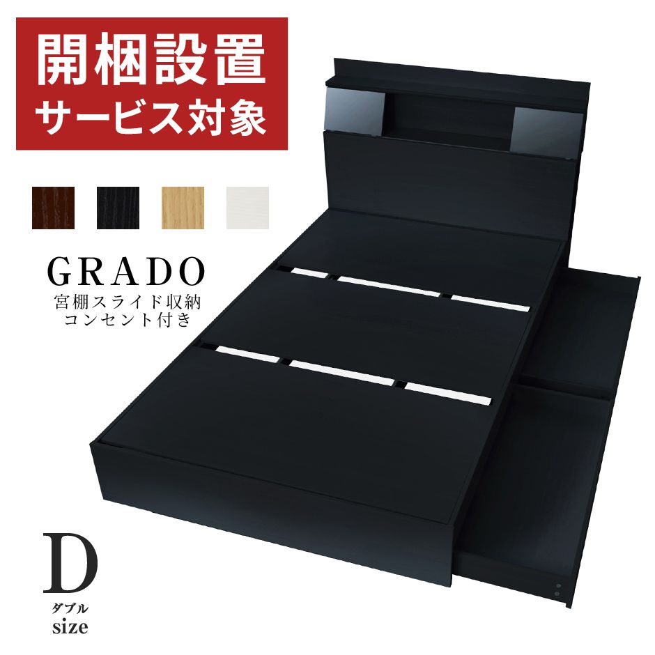 ベッド ベッドフレーム マットレス マットレス付 ポケットコイルマットレス ダブル ダブルベッド 木製 収納 宮棚 コンセント グラードD ベゴニアD 引越し祝い