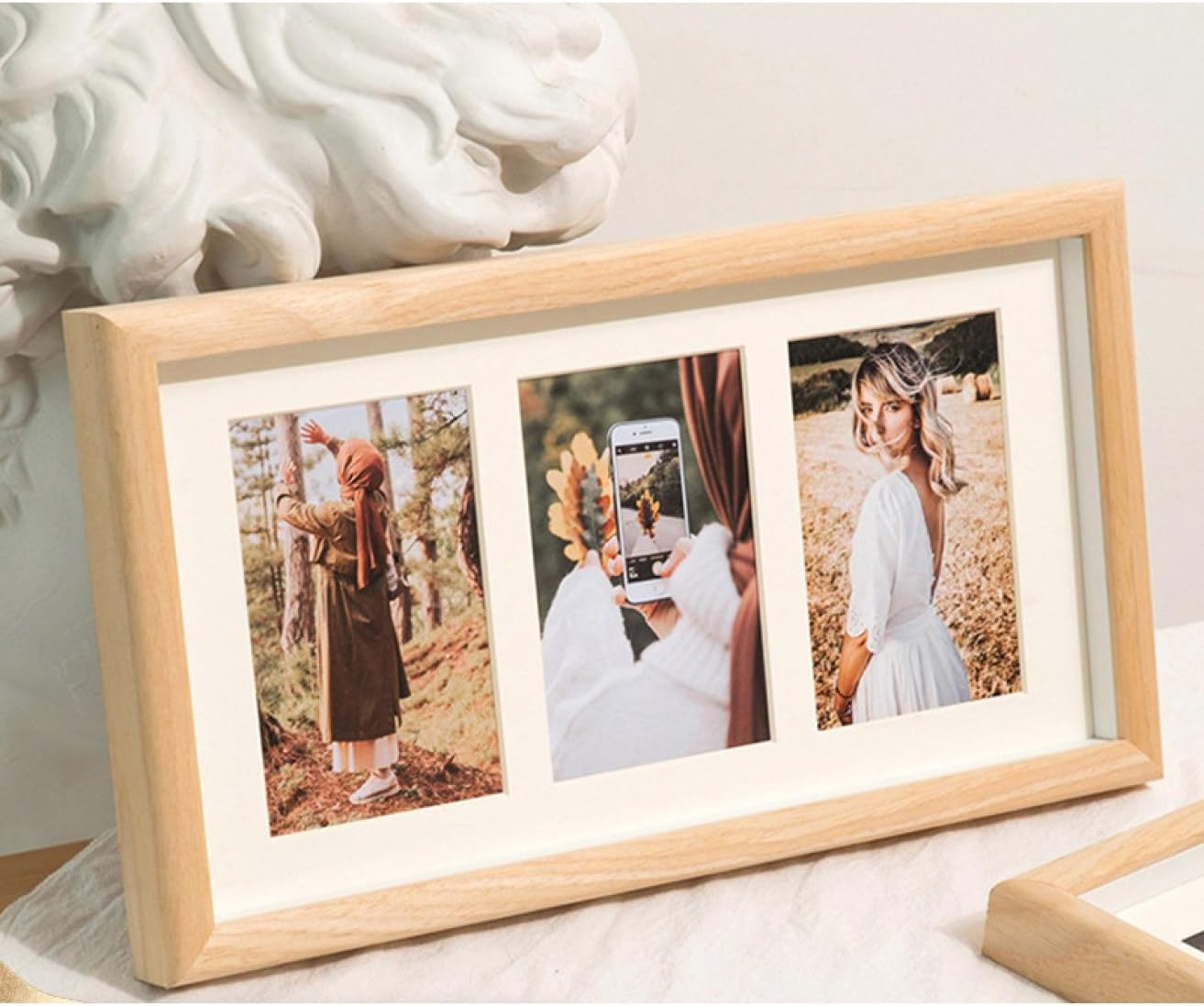飾れる フォトフレーム 横長 3窓 木製 おしゃれ 複数 壁掛け 写真 立て 複数 枚 飾る 壁 25.4*30.5cm 写真立て フォトスタンド 写真たて 記念日 プレゼント ま..