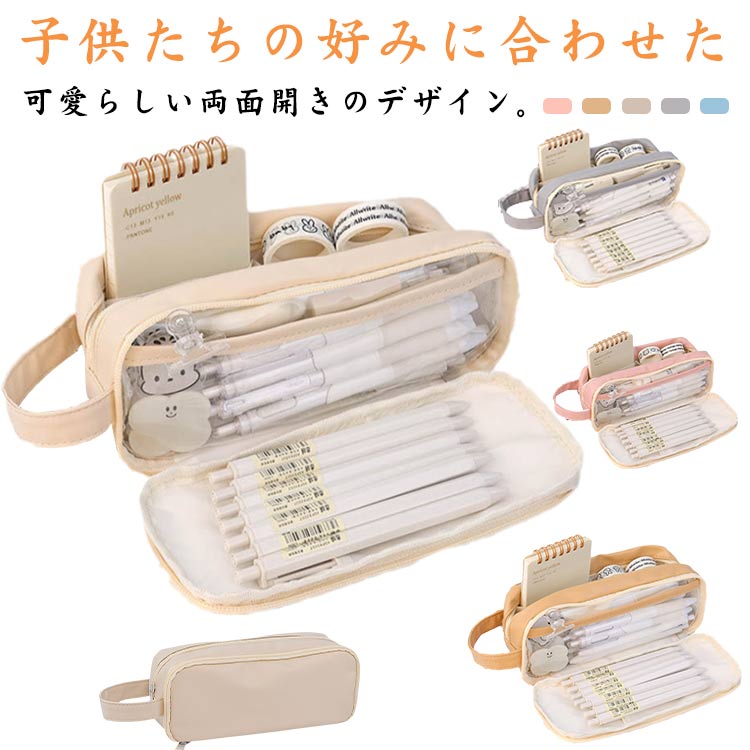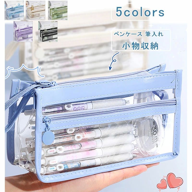 - 大容量 クリアペンケース 透明ペンケース かわいい 筆箱 シンプ