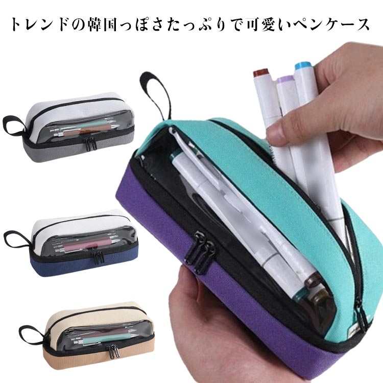 - ンケース 大容量 シンプル 筆箱 文具 韓国 おしゃれ 大学生 中学