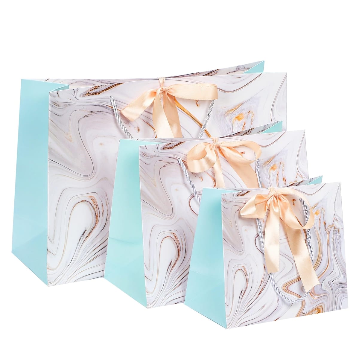 ideamall ギフトバッグ ラッピング 袋 大 中 小 紙袋 引き出物袋 プレゼント 大理石風 おしゃれ 3枚セット