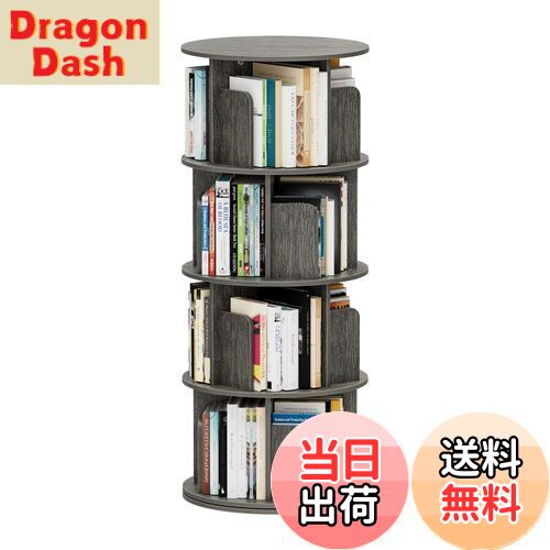 【送料無料】kukeimaru本棚 回転式本棚 4段 直径40CM*高さ128CM 漫画 絵本棚 子供本棚 CD棚 ラック 大容量 省スペース 黒橡