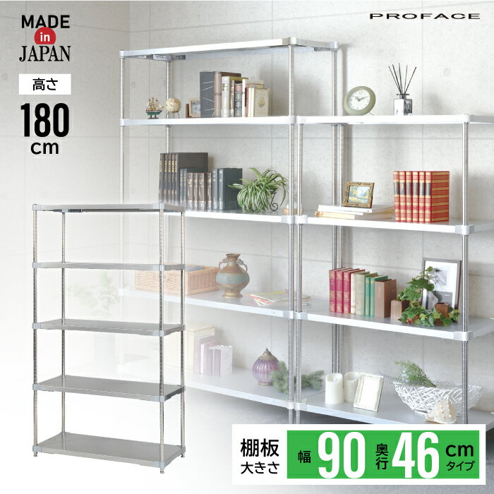 【エントリーでP10倍◆】ステンレスシェルフ 幅90 46×90 5段 H180 棚 シェルフ 日本製 耐薬 耐錆 インテリア ステンレス 丈夫 頑丈 衛生的 厨房 研究 PROFACE ..