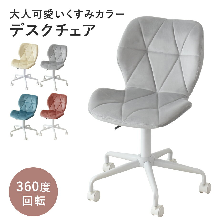 - 360度かわいい丸みのあるフォルムで大人可愛いワークチェア♪ お子様の学習椅子にもオススメ。ベロア調のキルティング加工とくすみカラーとホワイトの脚がおしゃれなデスクチェアです。