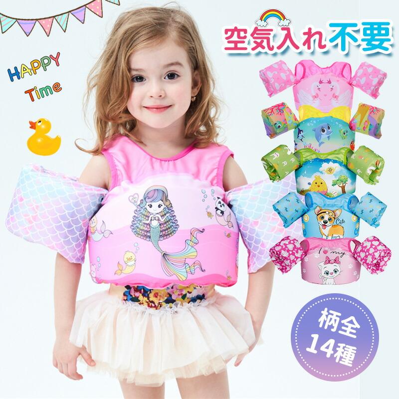 - アームリング 子供用 幼児 プール 浮き輪 水着型 腕 ライフジャケット 強い浮力 水泳練習用具 水遊び スイミング 補助具 浮力サポート 水泳ジャケット 便利 男女兼用