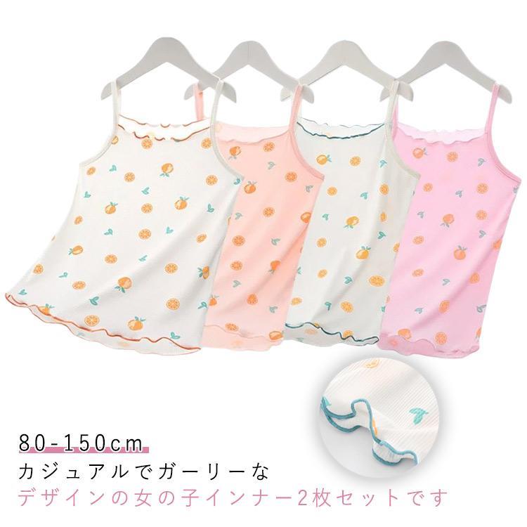子供服 キャミソール タンクトップ 女の子 インナー 下着 ガールズ トップス 綿 2枚セット 女児 肌着 夏服 キッズ 可愛い ピンク 白