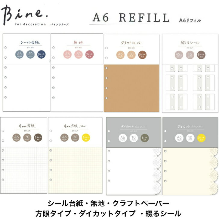 マインドウェイブ Bineシリーズ A6リフィル サンドカラー white 58075/aqua gray 58076 バイン クリアバインダー ホワイト アクアグレー 白バインダーリフィル..
