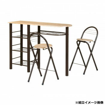- 弘益(KOEKI) UTILITY ライクビンテージ ハイテーブルセット ブラウン CT1200BR カウンターテーブルと折り畳み式のハイチェア2脚セット