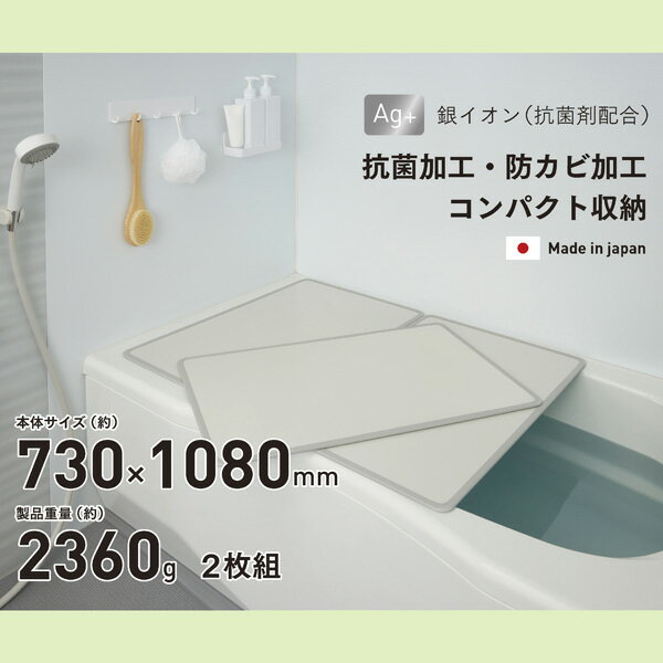 シンプルピュアAg アルミ組み合わせ風呂ふたL11 730x1080mm 2枚組 ふろふた 風呂蓋 お風呂フタ 清潔 掃除 コンパクト 抗菌 防カビ 日本製