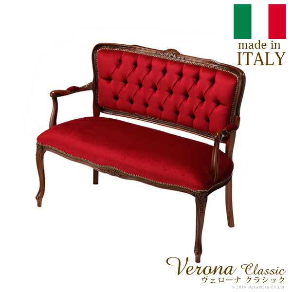 イタリア 家具 ヨーロピアン ヴェローナクラシック アームチェア-モケットレッド(2人掛) 猫脚 リビング ヨーロッパ家具 クラシック 輸入家具 アンティーク風..