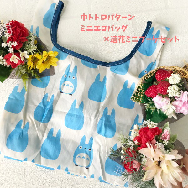 ジブリ グッズ となりのトトロ 中トトロパターン ミニエコバッグ×造花ミニブーケセット スタジオジブリ トトロ母の日 ホワイトデー