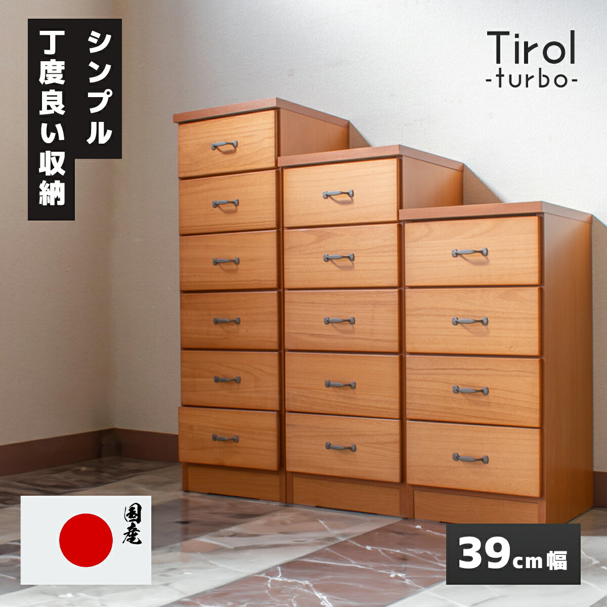 大川家具 スリムチェスト 日本製 完成品 幅39cm 39センチ ハイチェスト ローチェスト 木製 タンス 洋服タンス 脱衣所 天然木 収納 大容量 チロル ターボ 北欧 ..