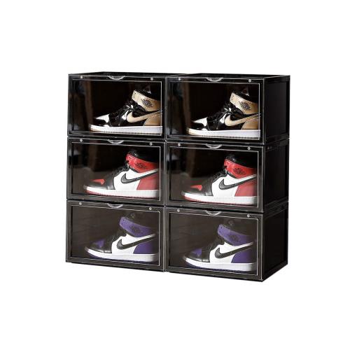 シューズボックス スニーカーボックス 靴箱 靴収納 ディスプレイ プラスチック 靴棚 大容量 組立式 積み重ね可能 省スペース 防塵横型 長辺透明扉付き磁石開閉..