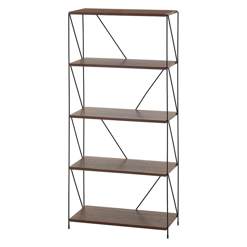 - 不二貿易 EZBOワイヤーラック5段 60幅 ブラックスチールのワイヤーフレームと木目調の棚板が落ち着いたインテリア 見せる収納 オープンラック 簡単組立て おススメはコチラ