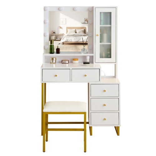【即納】ドレッサー 化粧台 テーブル 鏡台 ライト付き コンセント付き 3色LED 女優ミラー 引き出し 収納 椅子 セット サイド収納 メイク台 シンプル 大容量 可..