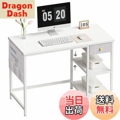 【送料無料】YeTom デスク 机 pcデスク パソコンデスク 勉強机 幅100cm 布製引き出し付き つくえ オフィス 作業机 左右入替可 在宅勤務 白い