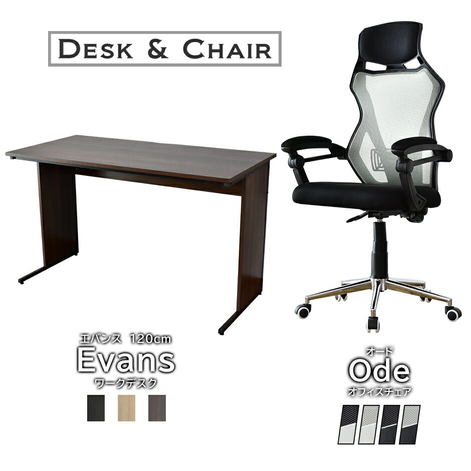 パソコンデスク オフィスチェア セット デスク チェア 在宅 テレワーク 木製 PC メッシュ リクライニング 肘付き ハイバック 低反発 エバンス120 オード4色 引..
