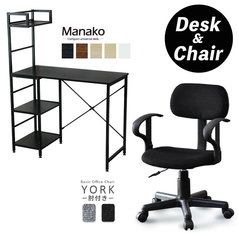 パソコンデスク オフィスチェア セット デスク チェア 在宅 テレワーク ラック 収納 木製 PC メッシュ 上下昇降 肘付き コンパクト 会議 マナコ ヨーク肘付き ..