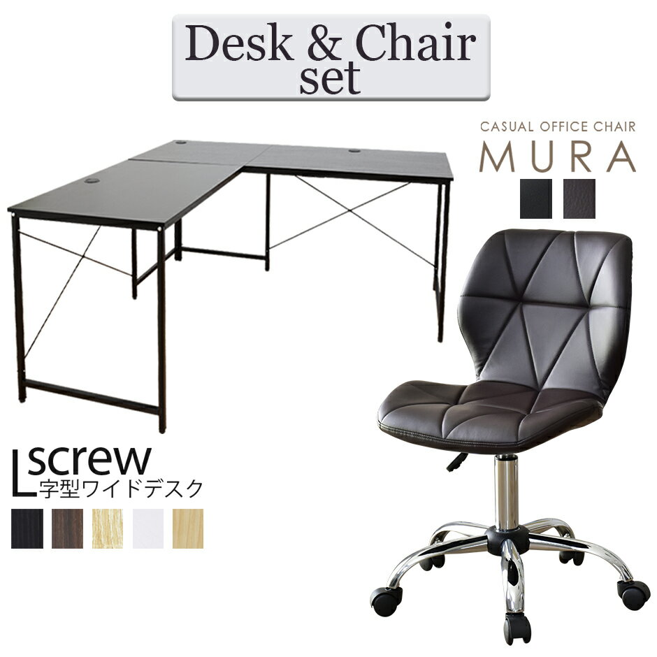 パソコンデスク オフィスチェア セット デスク 在宅 テレワーク 木製L字 PCデスク コーナー ゲーミングデスク 北欧 キャスター付き スクリュー ムーラPU