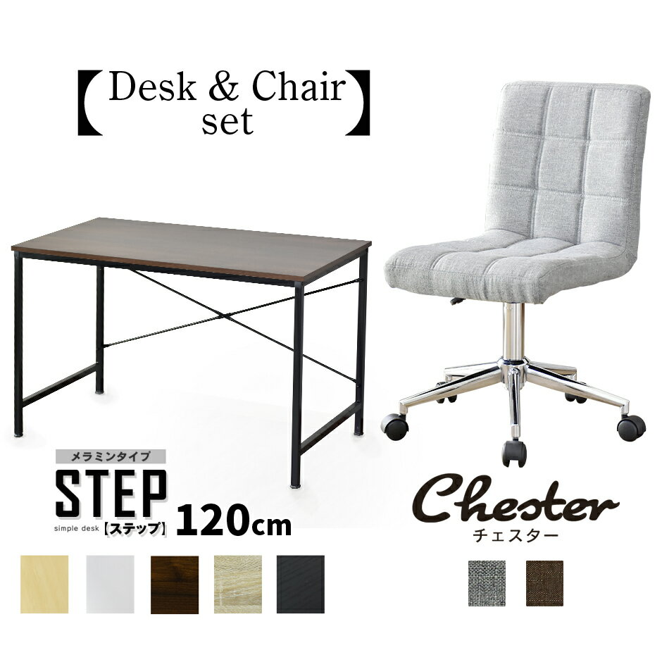 パソコンデスク オフィスチェア セット デスク チェア 在宅 テレワーク 木製 PC 上下昇降 おしゃれ デザイナーズ コンパクト 北欧 ステップ120cm チェスターFAB