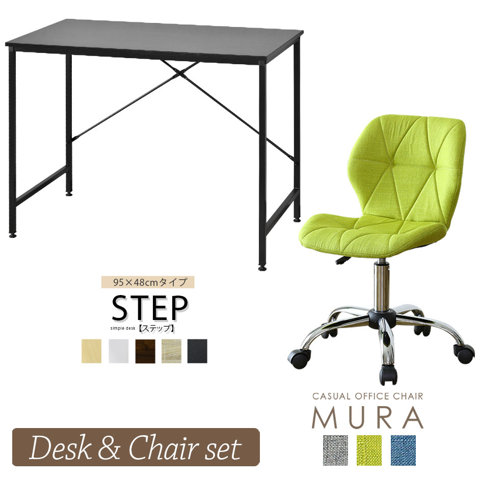 パソコンデスク オフィスチェア セット デスク チェア 在宅 テレワーク 木製 上下昇降 おしゃれ デザイナーズ コンパクト 北欧 ステップ95×48cm ムーラFAB