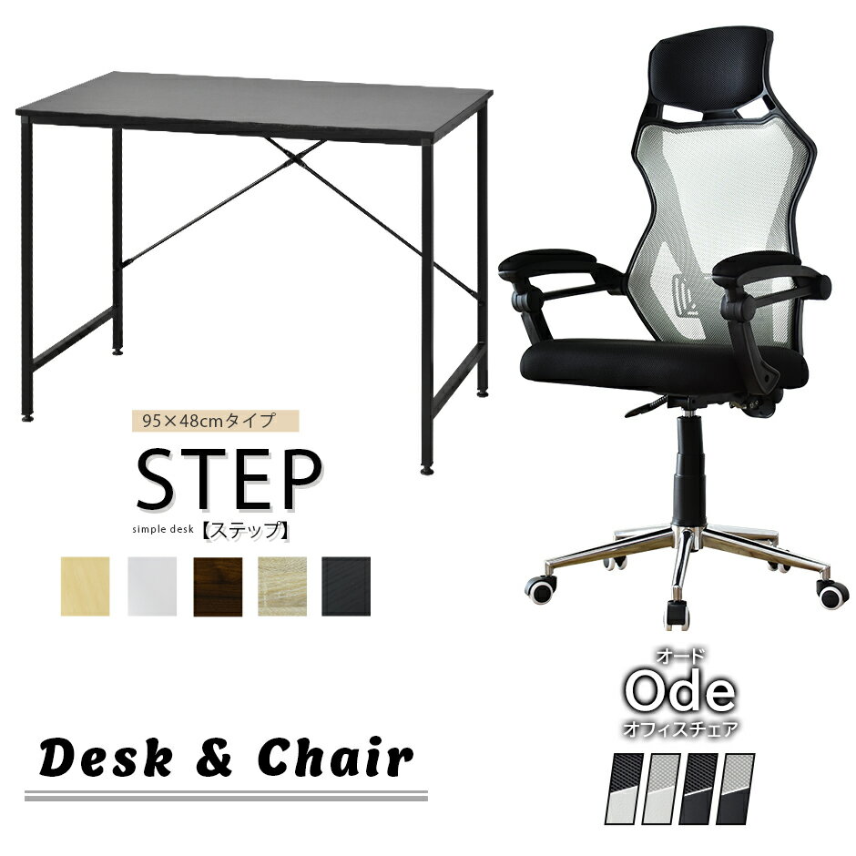 パソコンデスク オフィスチェア セット デスク チェア 在宅 テレワーク 木製 PC メッシュ リクライニング 肘付き ハイバック 低反発 ステップ95 オード4色 引..