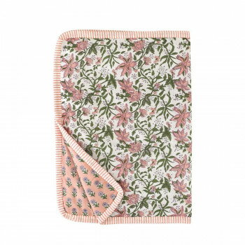 - カリーノブロックプリント ケットS ライラックピンク 11725006207 ボタニカル柄のブランケット