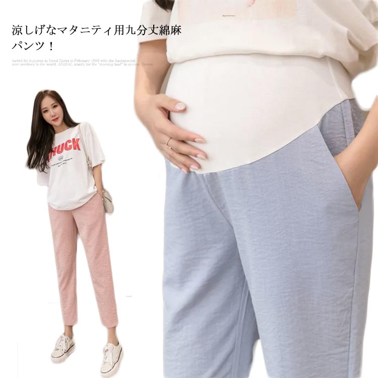 - 綿麻パンツ マタニティ テーパードパンツ 九分丈パンツ ボトムス カジュアルパンツ
