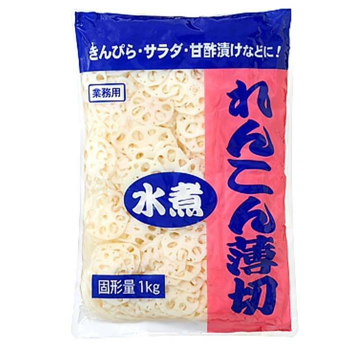 - 下処理の手間がいらず、便利にご使用いただけるレンコン薄切りの水煮です。