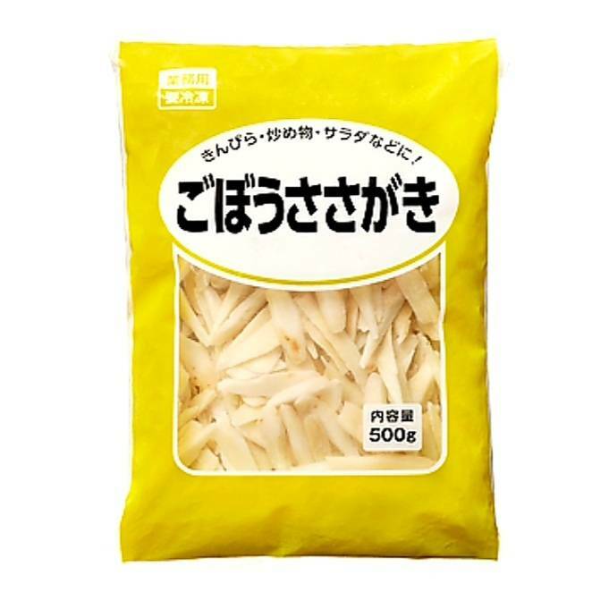- // 皮をむいてささがきにしたゴボウを軽く湯通しして、急速冷凍しました。