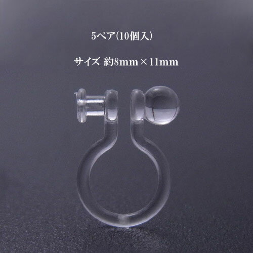 樹脂ノンホールピアス(丸皿付)5ペア(10個入) イヤリングパーツ クリア シンプル クリップ ハンドメイド