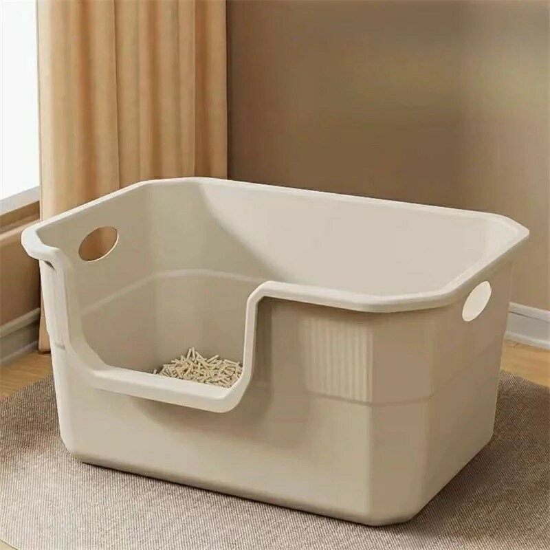 - 猫用トイレ 大型 オープンタイプ 大きい猫 多猫 トイレ本体 簡単掃除 清潔 飛散防止 一体成形 幅42×奥29×高18cm【入り口までの高さ】9cm 飛び散り防止 シンプルデザイン 組み立て不要
