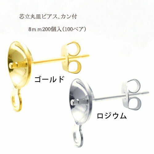 基礎金具 芯立丸皿ピアスカン付き 8mm100ペア(200個入) 国内メッキ 金具 お得用 パーツ ハンドメイド クラフト アクセサリー