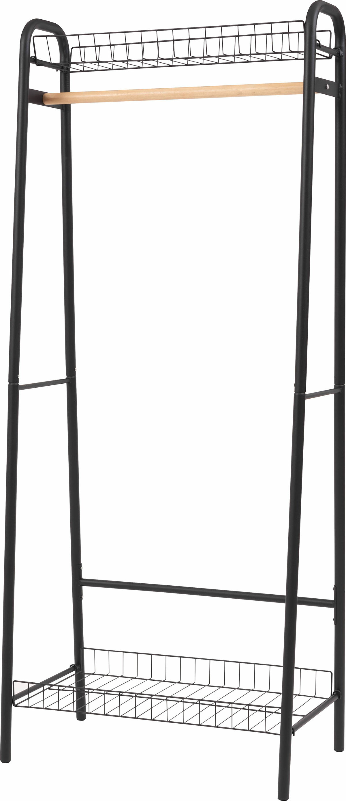 - 東谷ハンガーW70×D44×H170ブラック|ホワイトLFS-882BK収納ハンガーラックポールハンガー収納家具 衣類 小物収納 帽子 バッグ 長丈衣類可 移動可能 カゴ付 高さ170cm 玄関 店舗オススメ