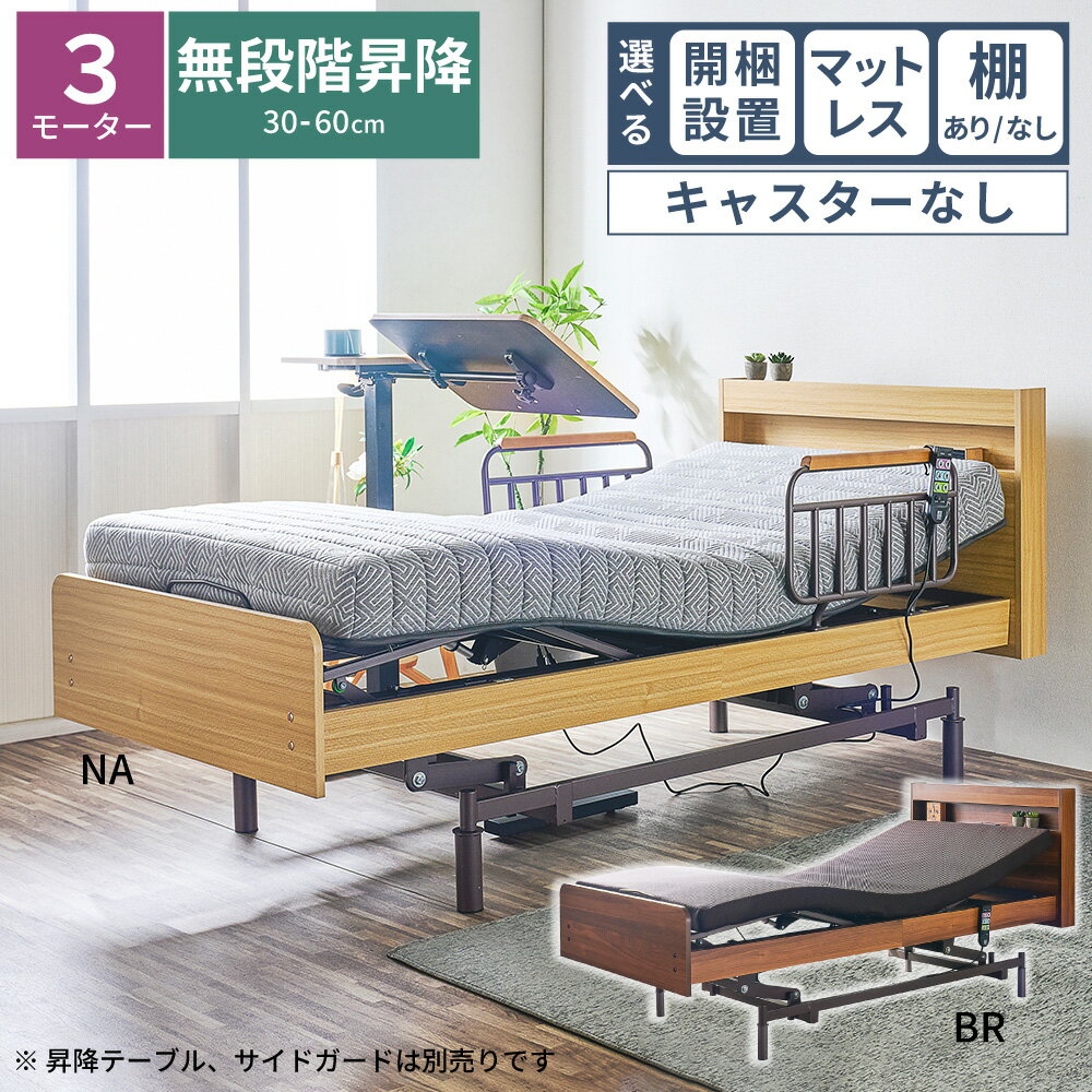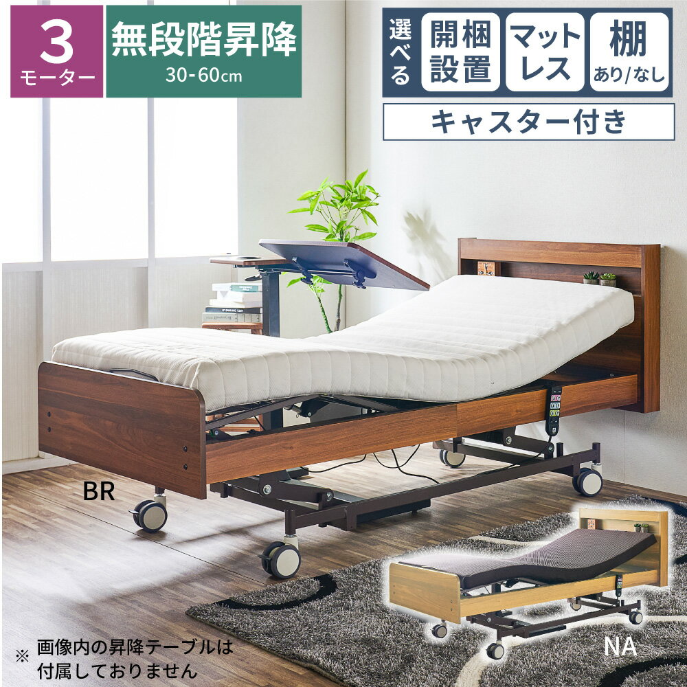 選べる開梱設置 電動ベッド 昇降式 ベッド 3モーター キャスターなし 非課税 介護 介護ベッド 介護用ベッド 電動 リクライニングベッド シングル 棚付き 棚な..