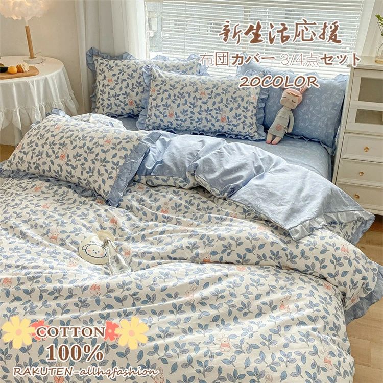 冬 可愛い 寝具 洗える 快眠 シングル 3/4点セット 寝具 花柄 コットン ボックスシーツ フラットシーツ 全綿 コットン 枕カバー