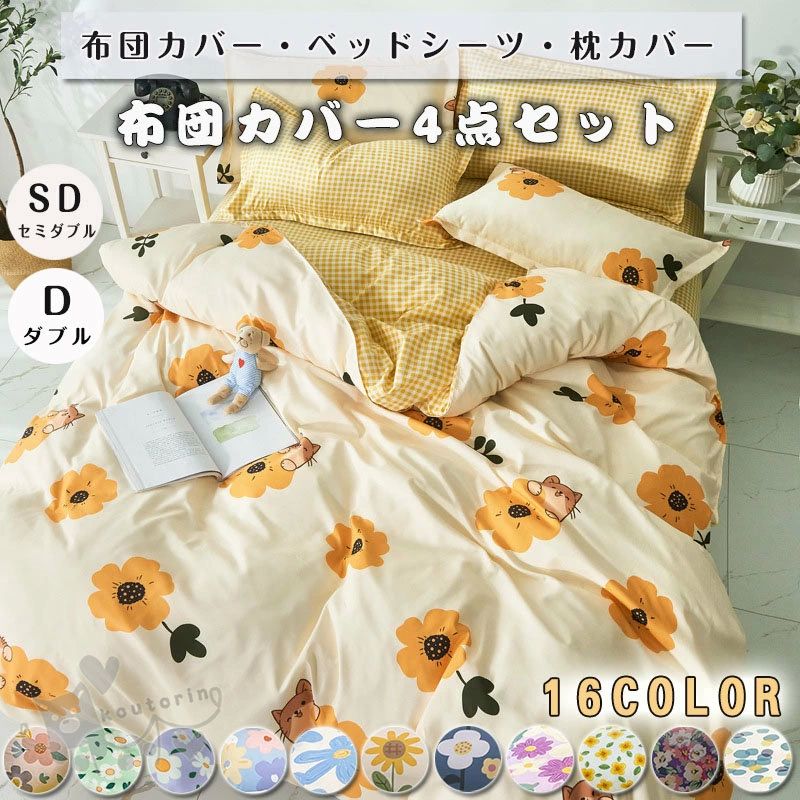 - 布団カバーセット シングル4点セット 掛け布団カバーセット 敷き