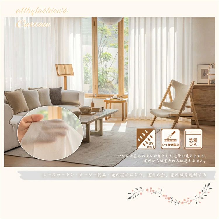 オ お安い ふわふわ シンプル 洗濯 ポリエステル レース 花刺繍 北欧風 丈65-255cm 幅80-350cm ポイント20倍!」レースカーテン