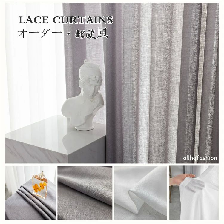 間仕切りカ 風通し オーダーカーテン フック 丈直し インテリア 腰窓 無地 リネン 麻 北欧風 1枚 レースカーテン 幅80-幅350cm