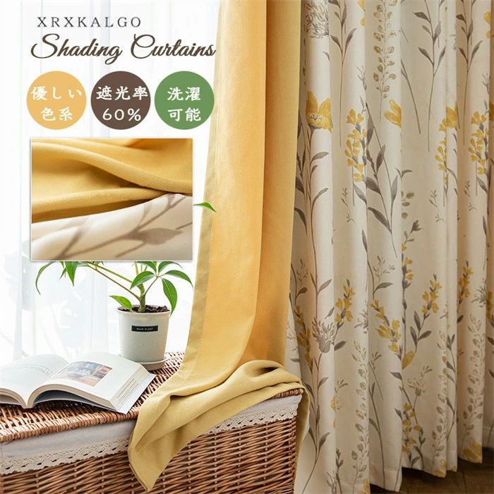 送料無料 フランス風 オーダーカーテン 洗濯可能 オーダー 北欧風 現代風 平置き 遮光60% 幅100-350cm 1枚 黄花柄