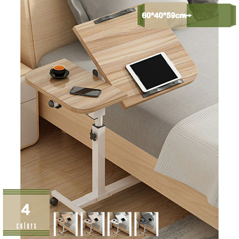 - 角度調整 昇降式 サイドテーブル 高さ調節 昇降テーブル ベッドテーブル ソファテーブル キャスター付き ソファサイドテーブル おしゃれ 木目調 折りたたみテーブル