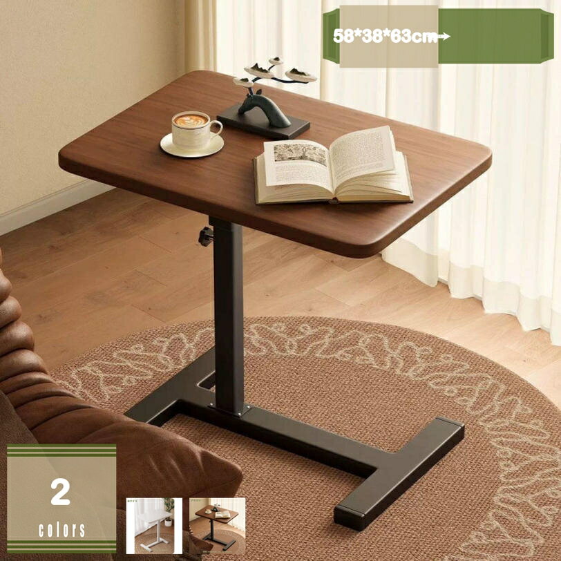 - サイドテーブル 昇降 キャスター付き おしゃれ センターテーブル 伸縮 長方形 北欧 木製 高さ調節 白 スチール ベッド横 デスク 玄関 回転 おしゃれ 昇降式 食事 折り畳みテーブル