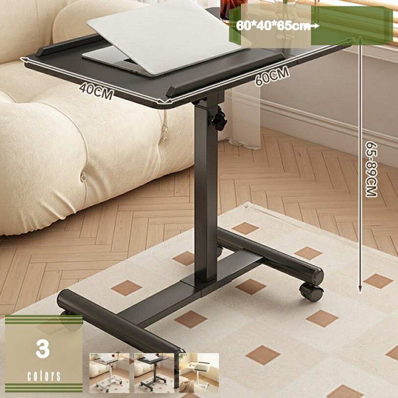 - サイドテーブル 昇降テーブル パソコンデスク pcデスク キャスター付き 移動便利 回転 昇降式 高さ調整 天板角度調整可能 リビング 寝室 ソファ ベッドテーブル 勉強机 仕事机