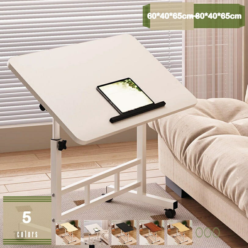 - 角度調整 昇降式テーブル 高さ調節 デスク 折りたたみ キャスター付き サイドテーブル コンパクト パソコンデスク オフィスデスク 移動式テーブル 勉強机 仕事デスク ベッドテーブル