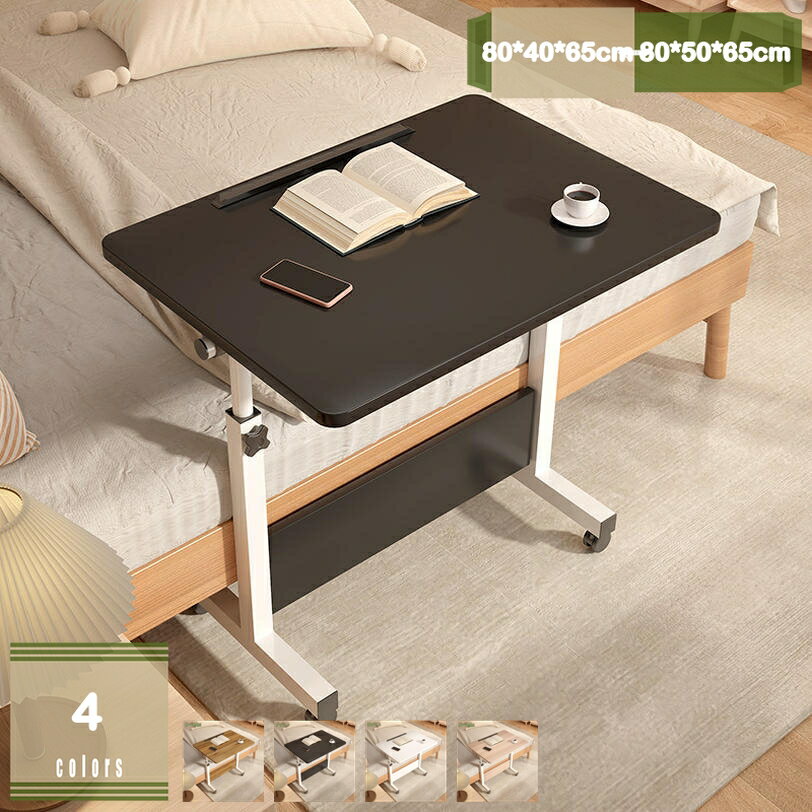 - サイドテーブル昇降式 折りたたみ昇降デスク ベッドテーブル PCテーブル サイドデスク キャスター付きテーブル 組み立て簡単 軽量 移動式テーブル ナイトテーブル